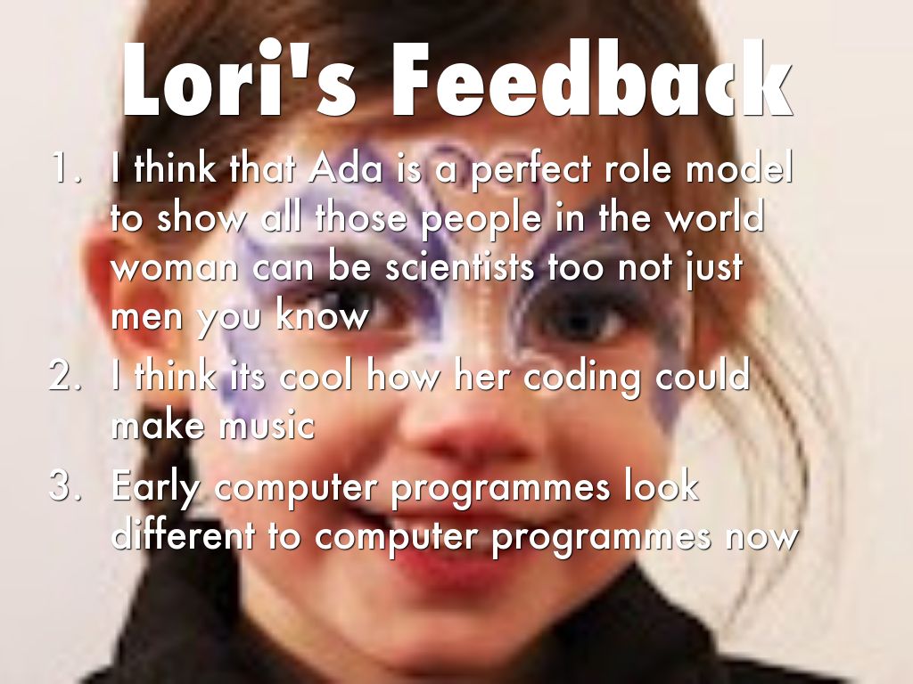 I think that Ada is a perfect role model to show all those people in the world woman can be scientists too not just men you know