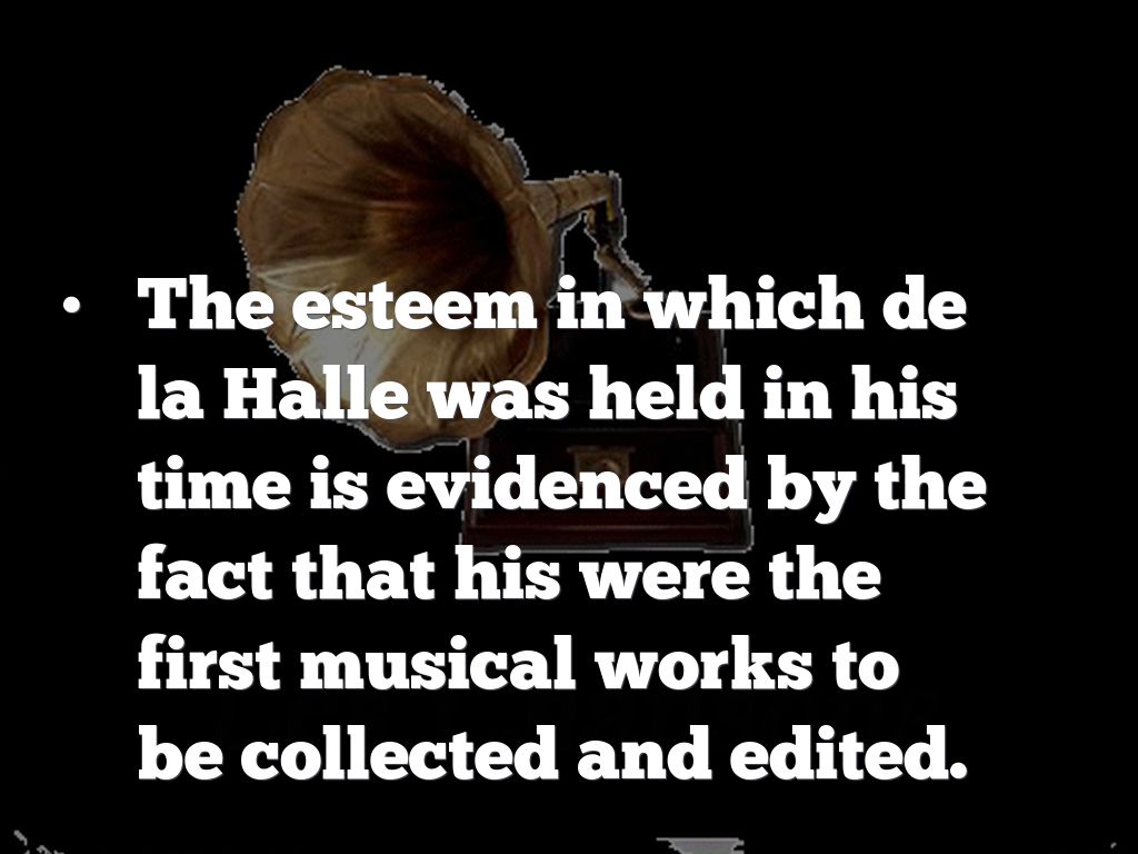The esteem in which de la Halle was held in his time is evidenced by the fact that his were the first musical works to be collected and edited.