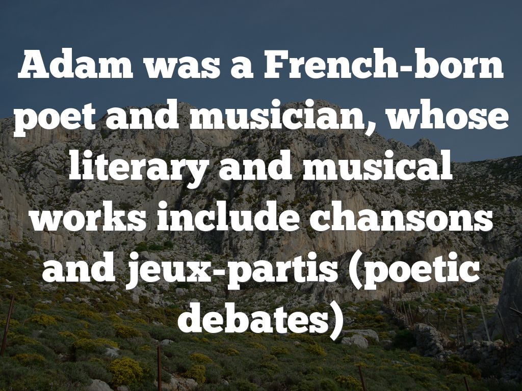 Adam was a French-born poet and musician, whose literary and musical works include chansons and jeux-partis (poetic debates)