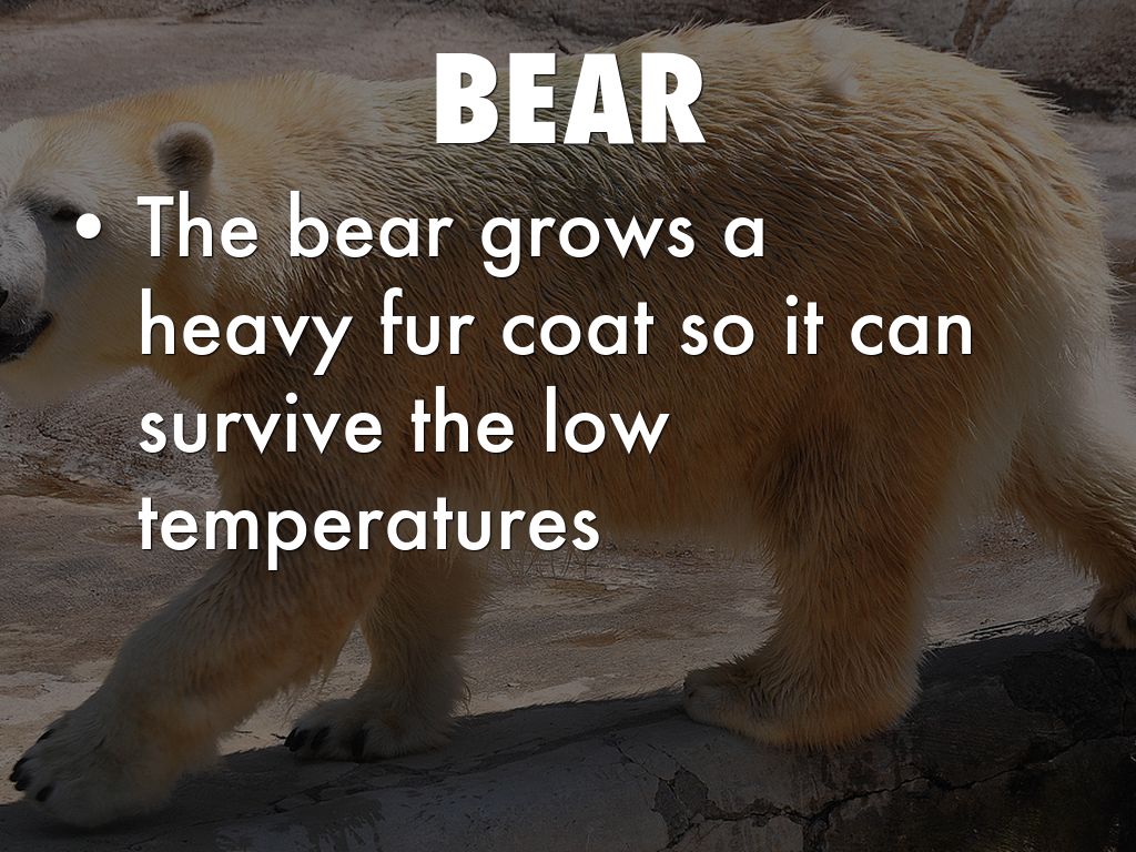The bear grows a heavy fur coat so it can survive the low temperatures