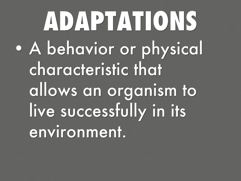 A behavior or physical characteristic that allows an organism to live successfully in its environment.