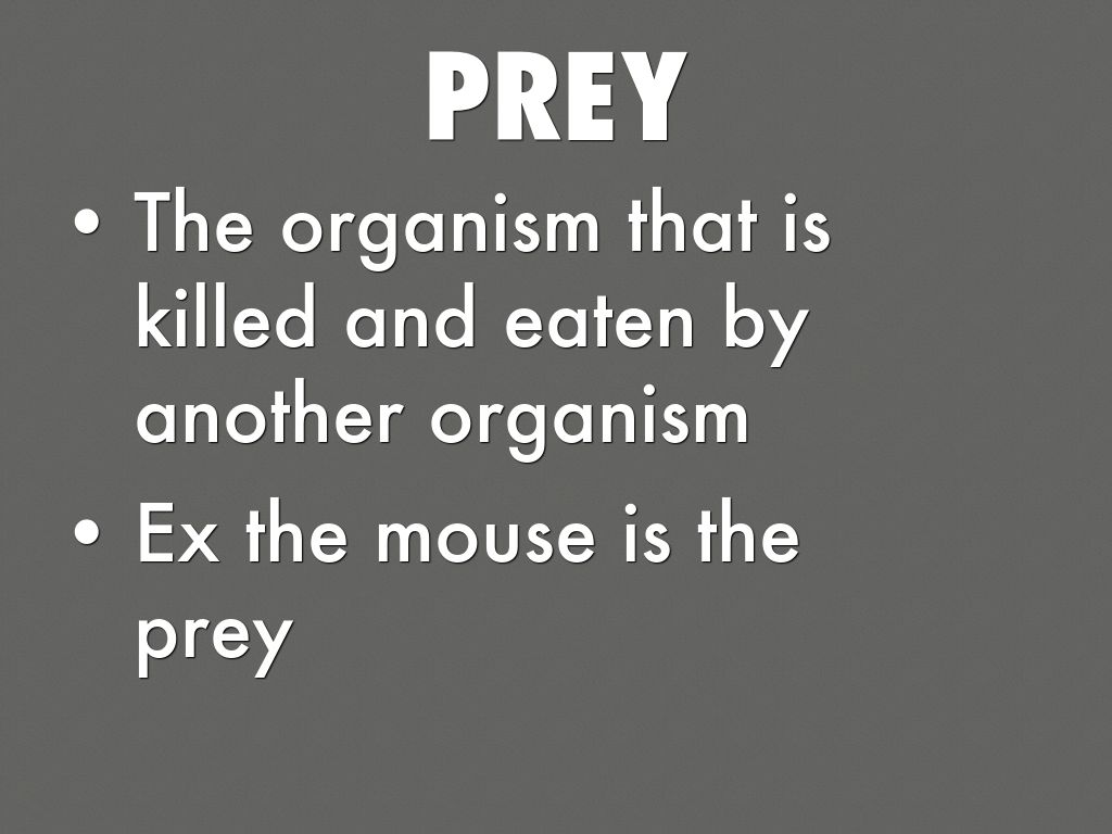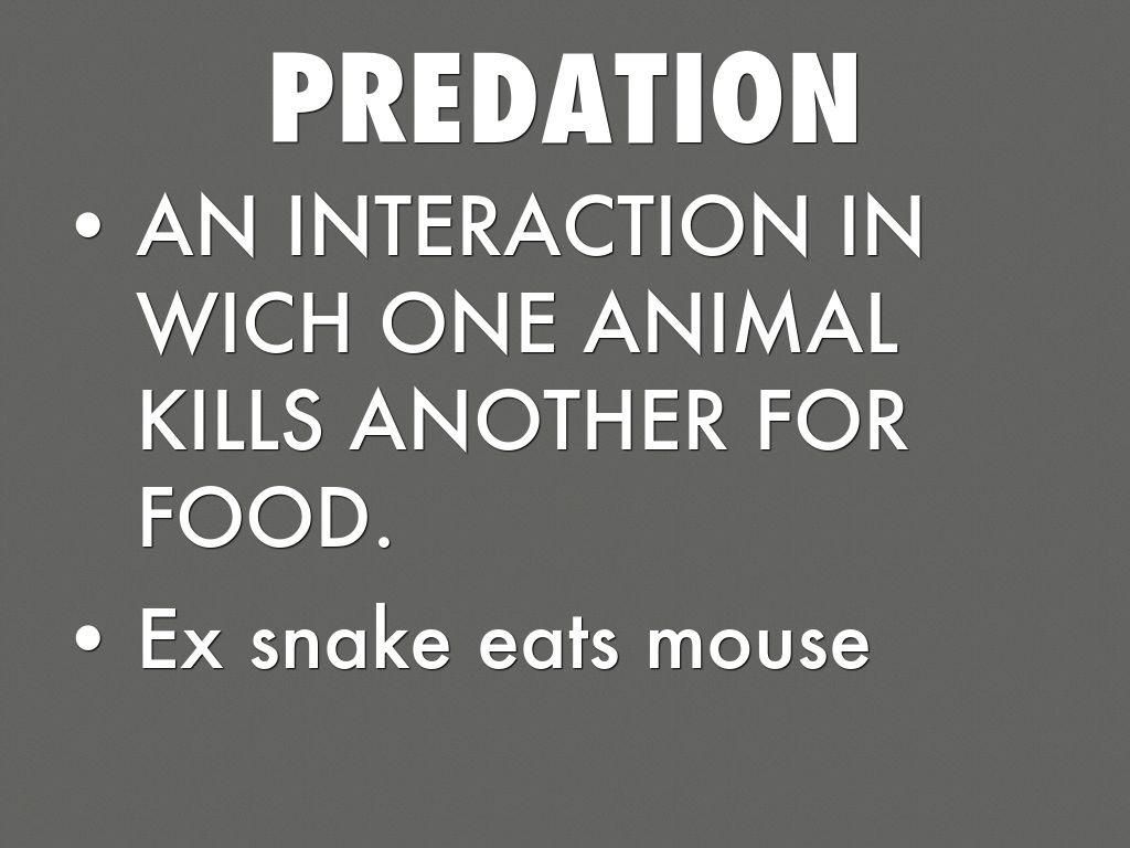 AN INTERACTION IN WICH ONE ANIMAL KILLS ANOTHER FOR FOOD.