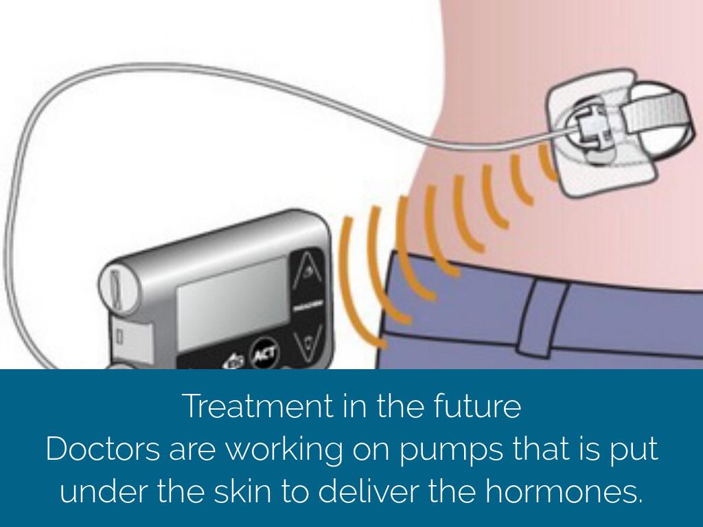 Doctors are working on pumps that is put under the skin to deliver the hormones.