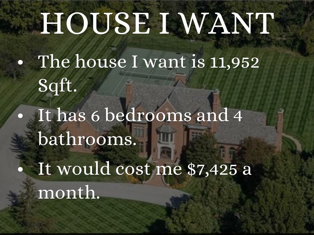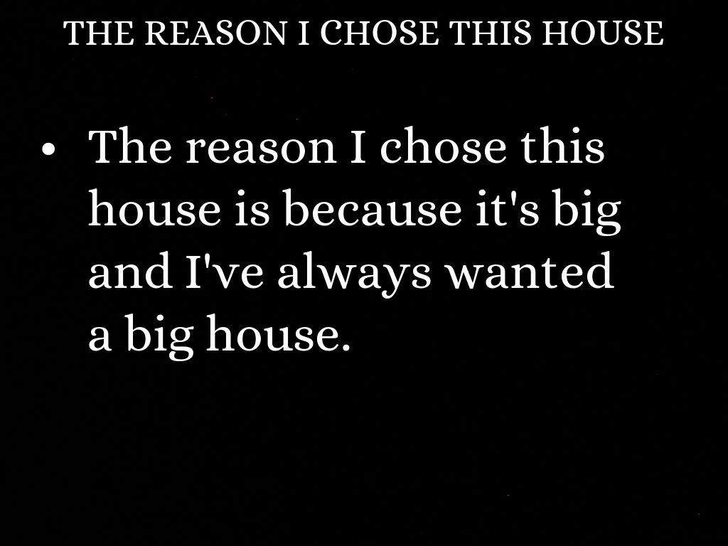 The reason I chose this house is because it's big and I've always wanted a big house.