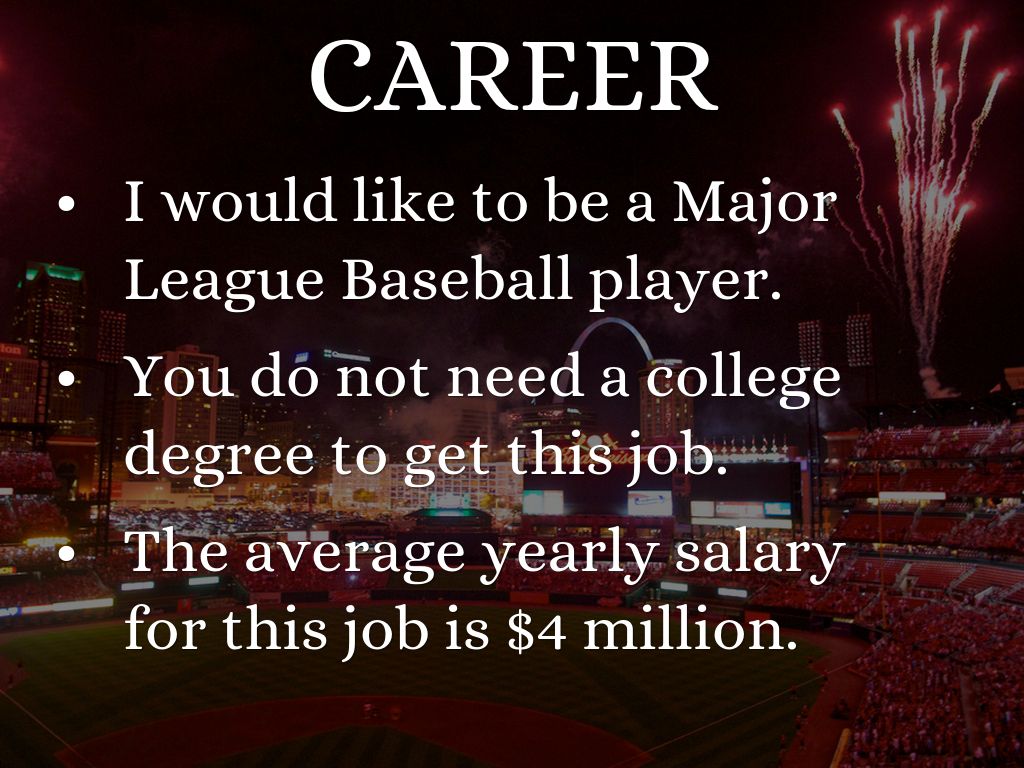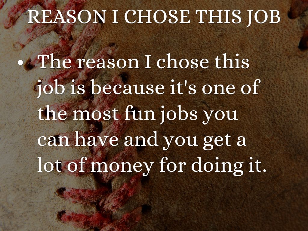 The reason I chose this job is because it's one of the most fun jobs you can have and you get a lot of money for doing it.
