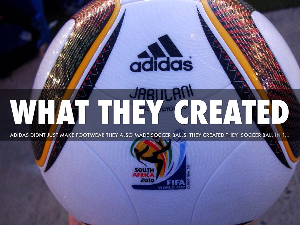 ADIDAS DIDNT JUST MAKE FOOTWEAR THEY ALSO MADE SOCCER BALLS. THEY CREATED THEY SOCCER BALL IN 1970