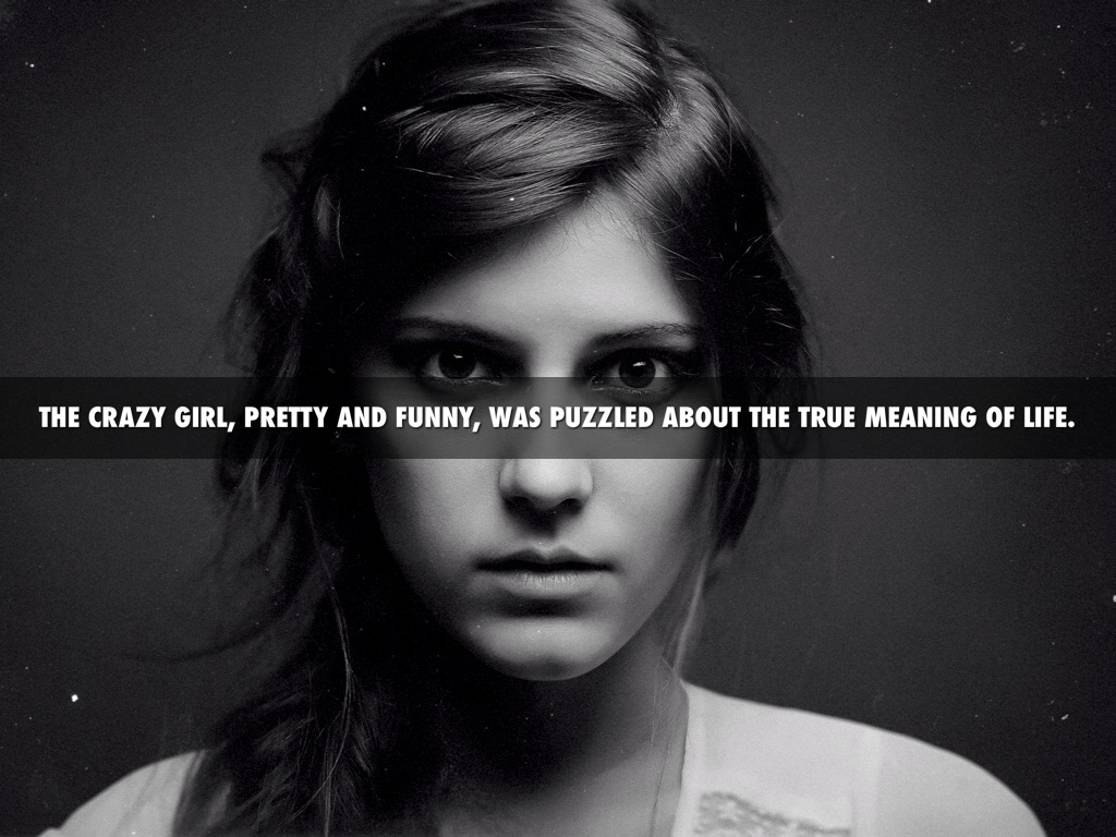 THE CRAZY GIRL, PRETTY AND FUNNY, WAS PUZZLED ABOUT THE TRUE MEANING OF LIFE.
