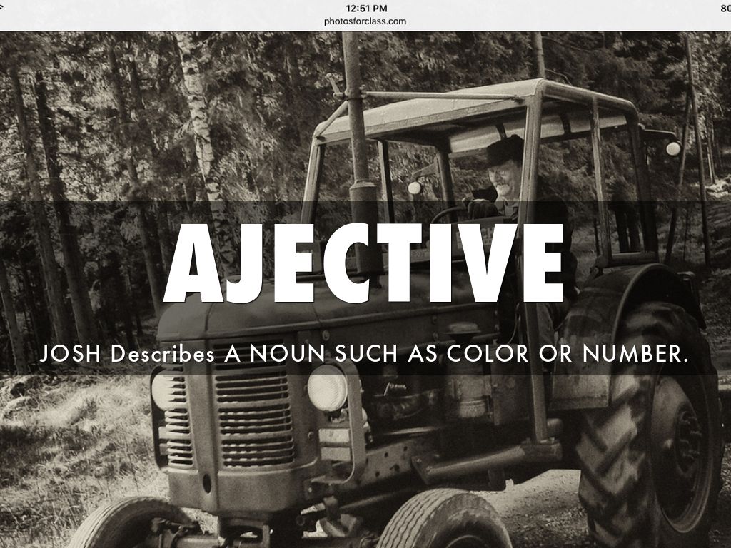 JOSH Describes A NOUN SUCH AS COLOR OR NUMBER.