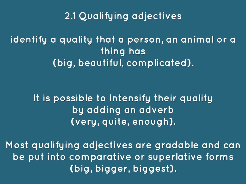 Most qualifying adjectives are gradable and can be put into comparative or superlative forms