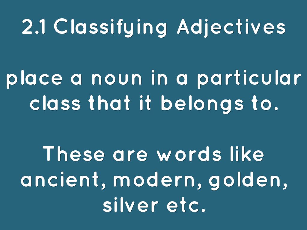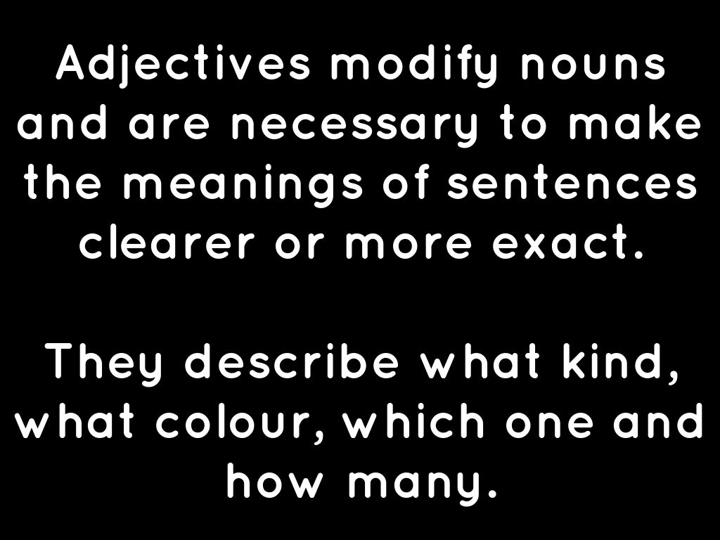 Adjectives modify nouns and are necessary to make the meanings of sentences clearer or more exact.