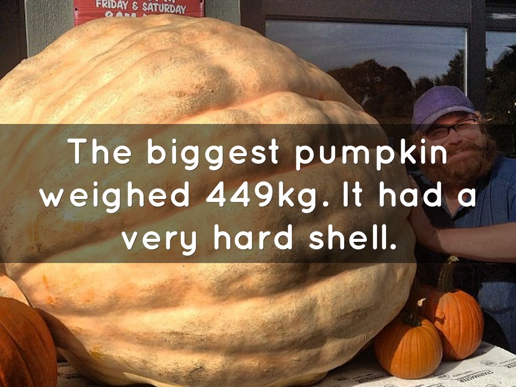 The biggest pumpkin weighed 449kg. It had a very hard shell.