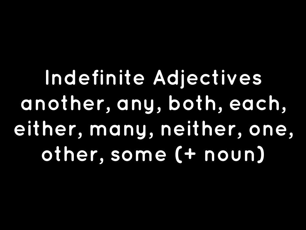 another, any, both, each, either, many, neither, one, other, some (+ noun)