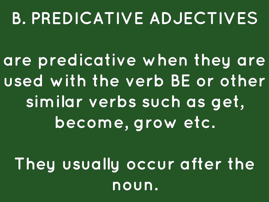 are predicative when they are used with the verb BE or other similar verbs such as get, become, grow etc.