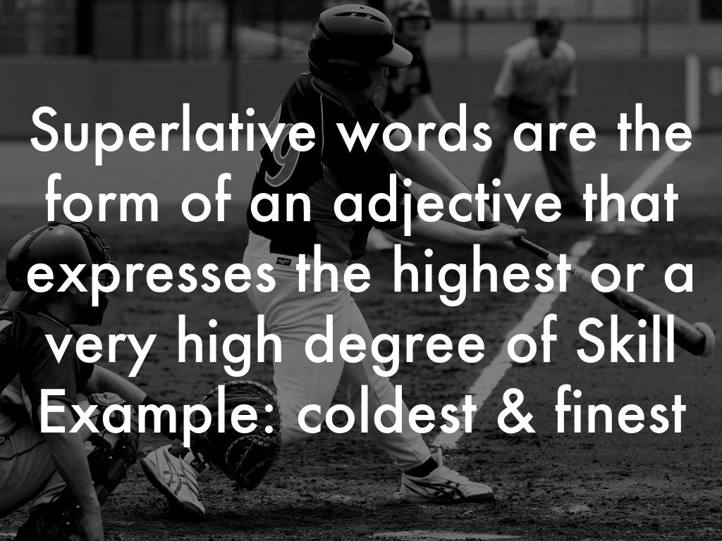 Superlative words are the form of an adjective that expresses the highest or a very high degree of Skill