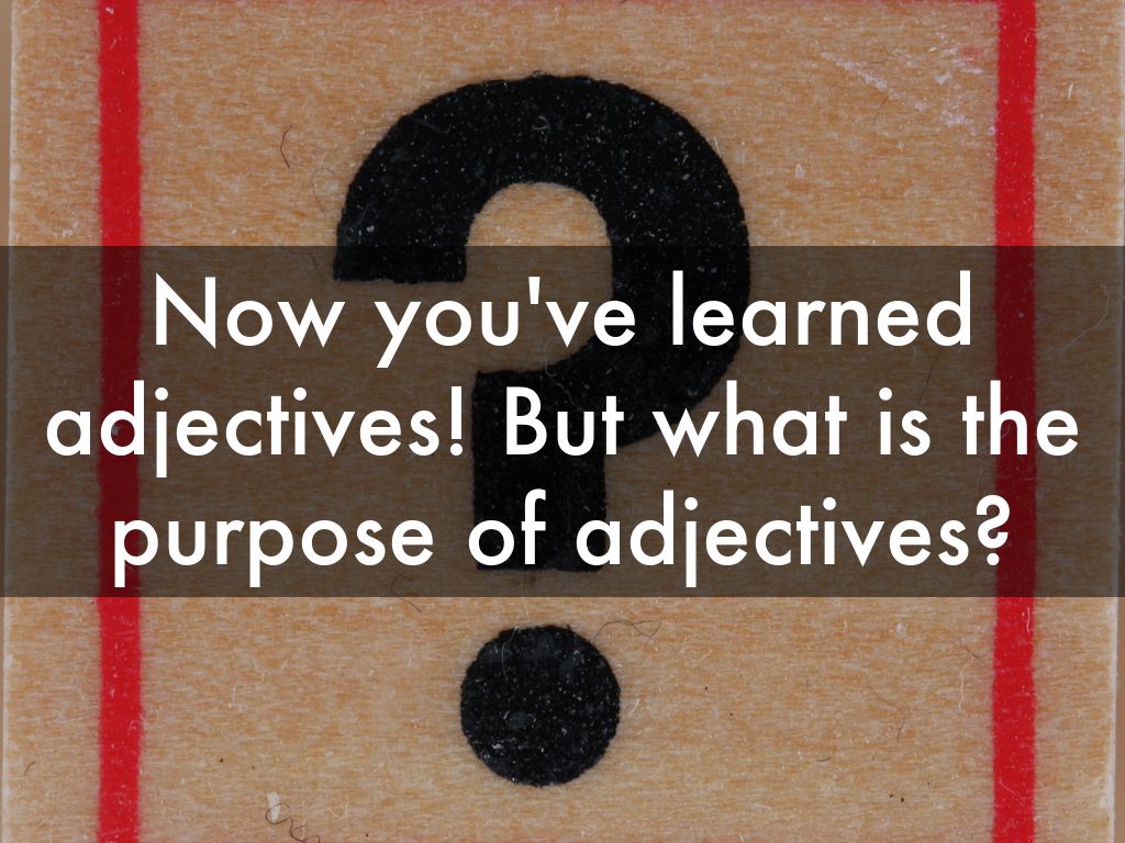 Now you've learned adjectives! But what is the purpose of adjectives?