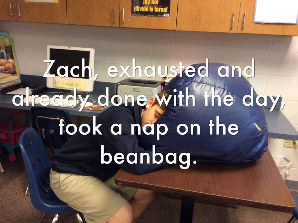 Zach, exhausted and already done with the day, took a nap on the beanbag.