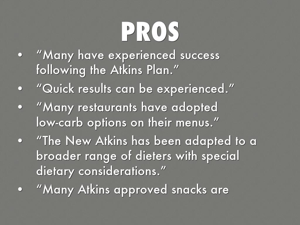 - “The New Atkins has been adapted to a broader range of dieters with special dietary considerations.”