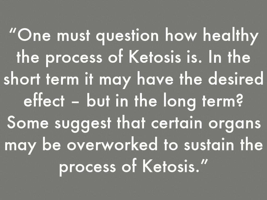 “One must question how healthy the process of Ketosis is. In the short term it may have the desired effect – but in the long term? Some suggest that certain organs may be overworked to sustain the process of Ketosis.”