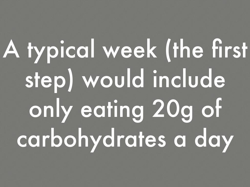 A typical week (the first step) would include only eating 20g of carbohydrates a day