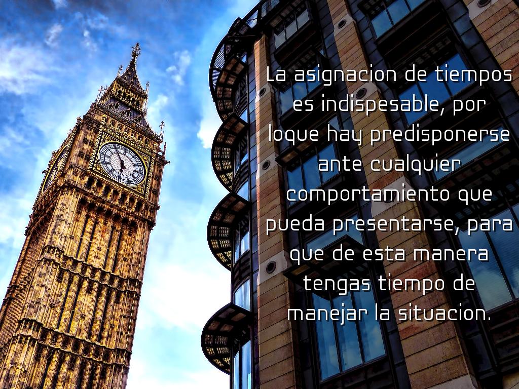 La asignacion de tiempos es indispesable, por loque hay predisponerse ante cualquier comportamiento que pueda presentarse, para que de esta manera tengas tiempo de manejar la situacion.