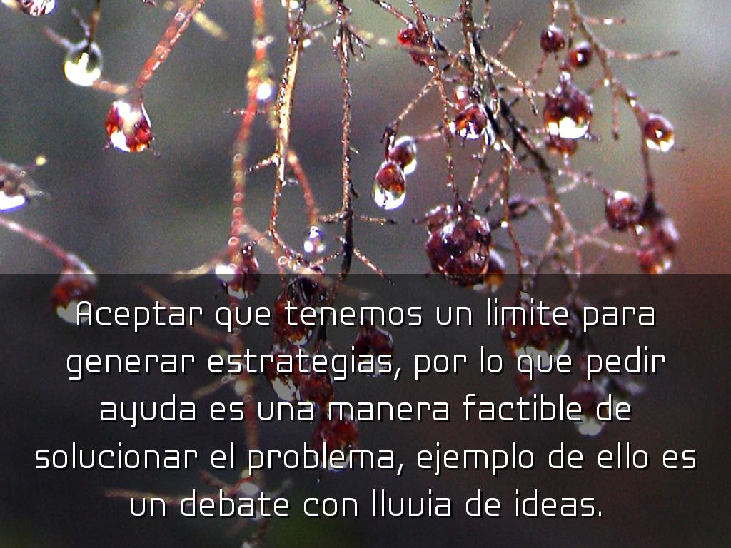 Aceptar que tenemos un limite para generar estrategias, por lo que pedir ayuda es una manera factible de solucionar el problema, ejemplo de ello es un debate con lluvia de ideas.