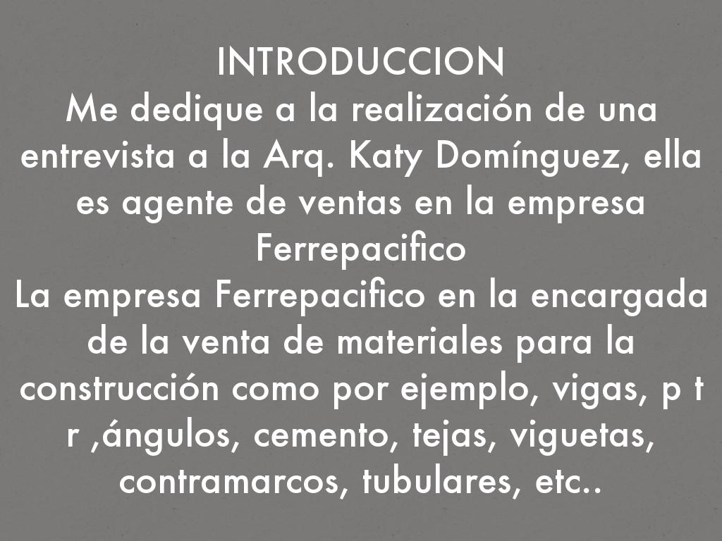 Me dedique a la realización de una entrevista a la Arq. Katy Domínguez, ella es agente de ventas en la empresa Ferrepacifico