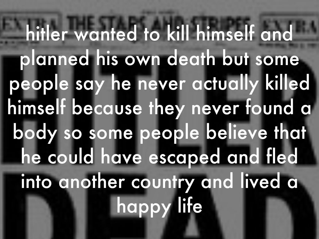 hitler wanted to kill himself and planned his own death but some people say he never actually killed himself because they never found a body so some people believe that he could have escaped and fled into another country and lived a happy life