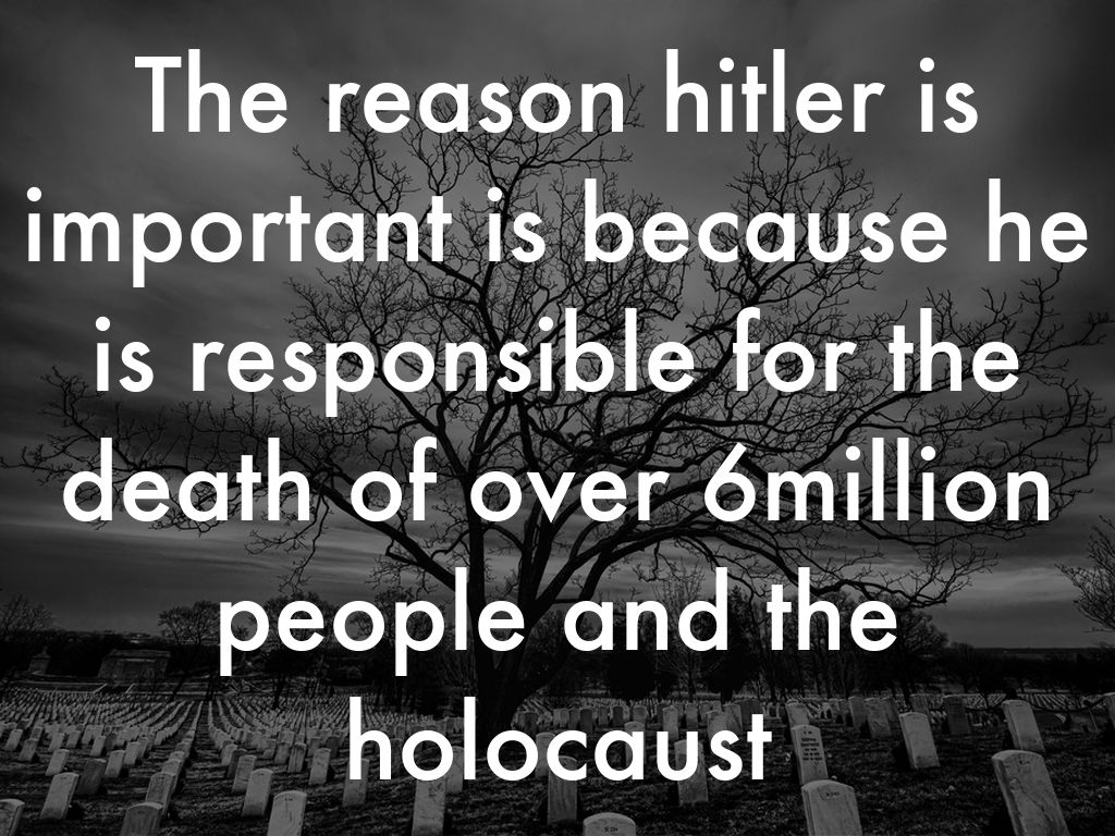 The reason hitler is important is because he is responsible for the death of over 6million people and the holocaust