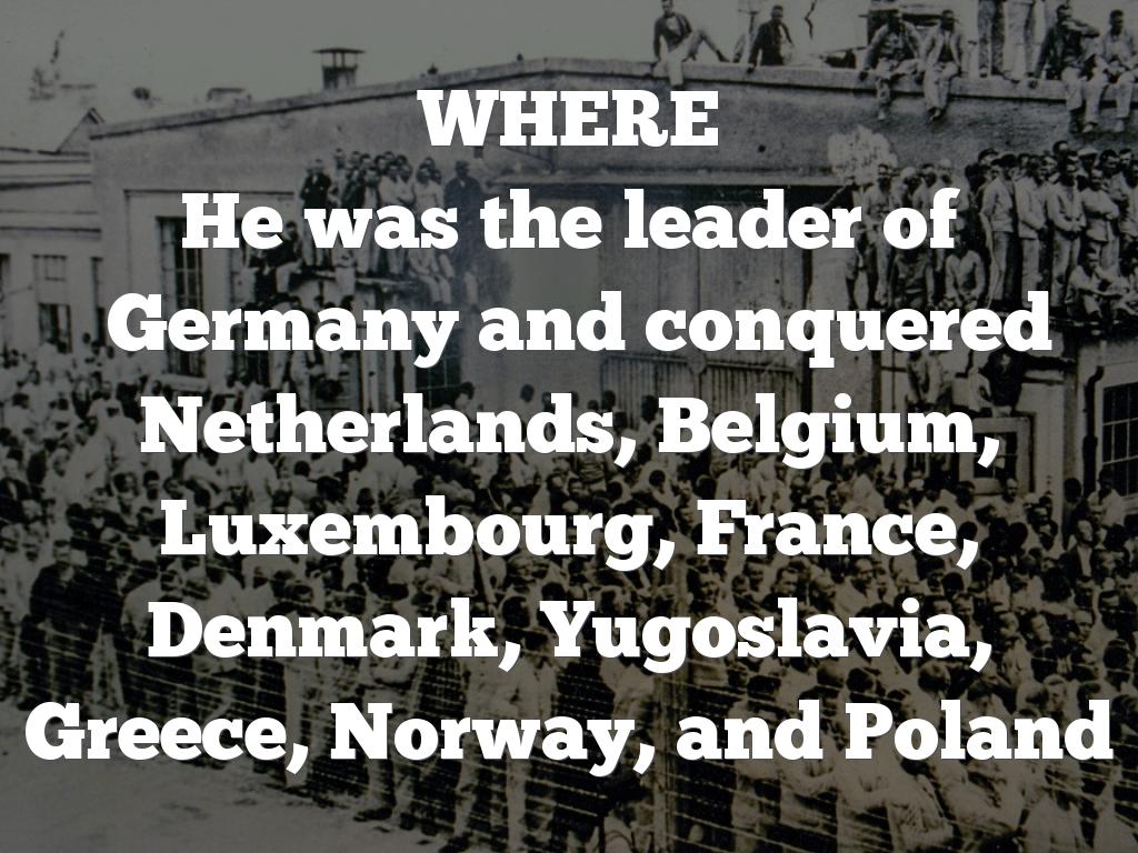He was the leader of Germany and conquered Netherlands, Belgium, Luxembourg, France, Denmark, Yugoslavia, Greece, Norway, and Poland