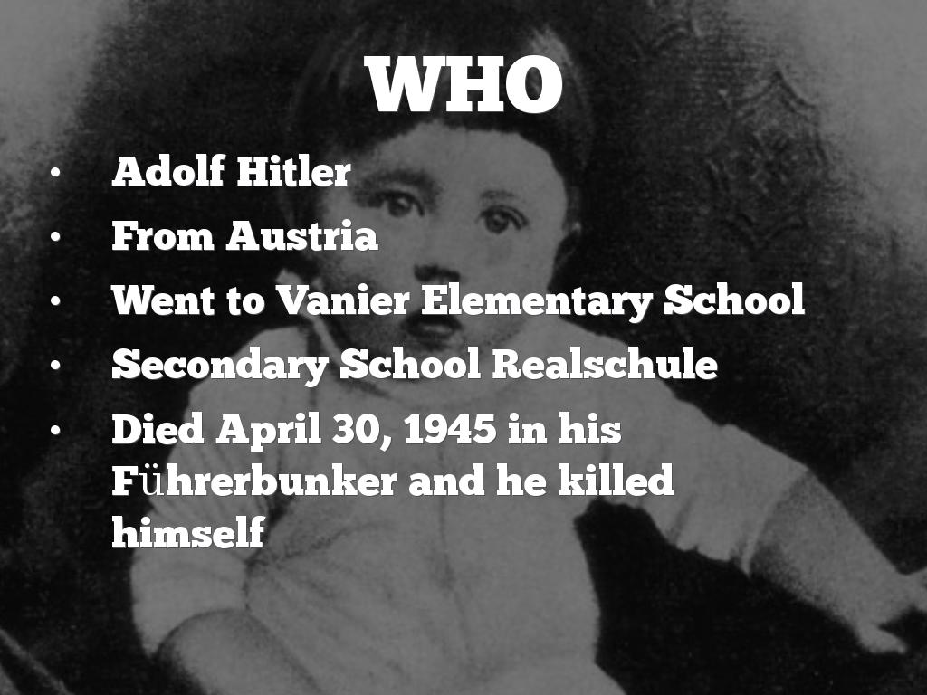 • Died April 30, 1945 in his Führerbunker and he killed himself