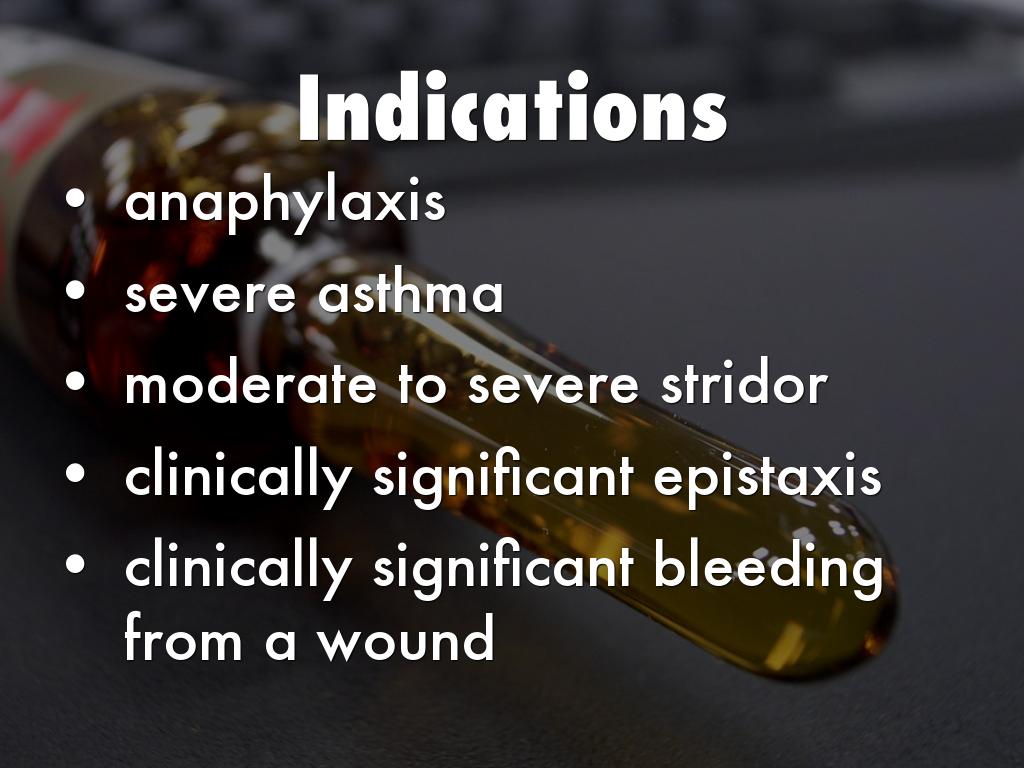 - Each mg diluted to total of 10 ml using 0.9% saline. IN for epistaxis