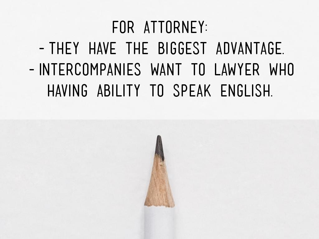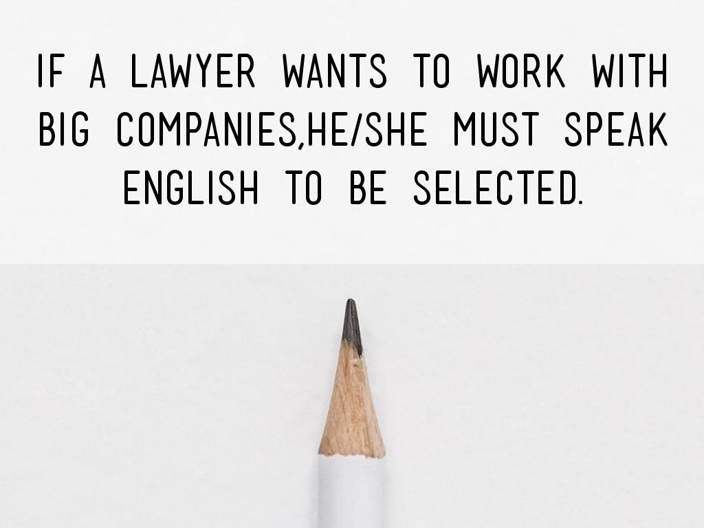 if a lawyer wants to work with big companies,he/she must speak english to be selected.