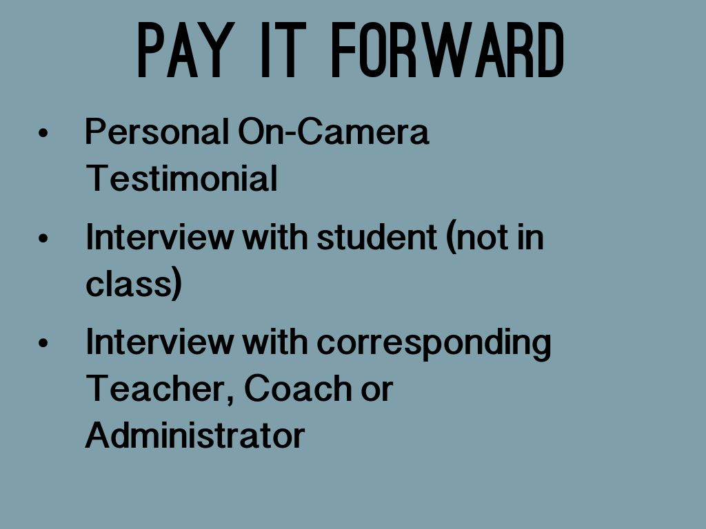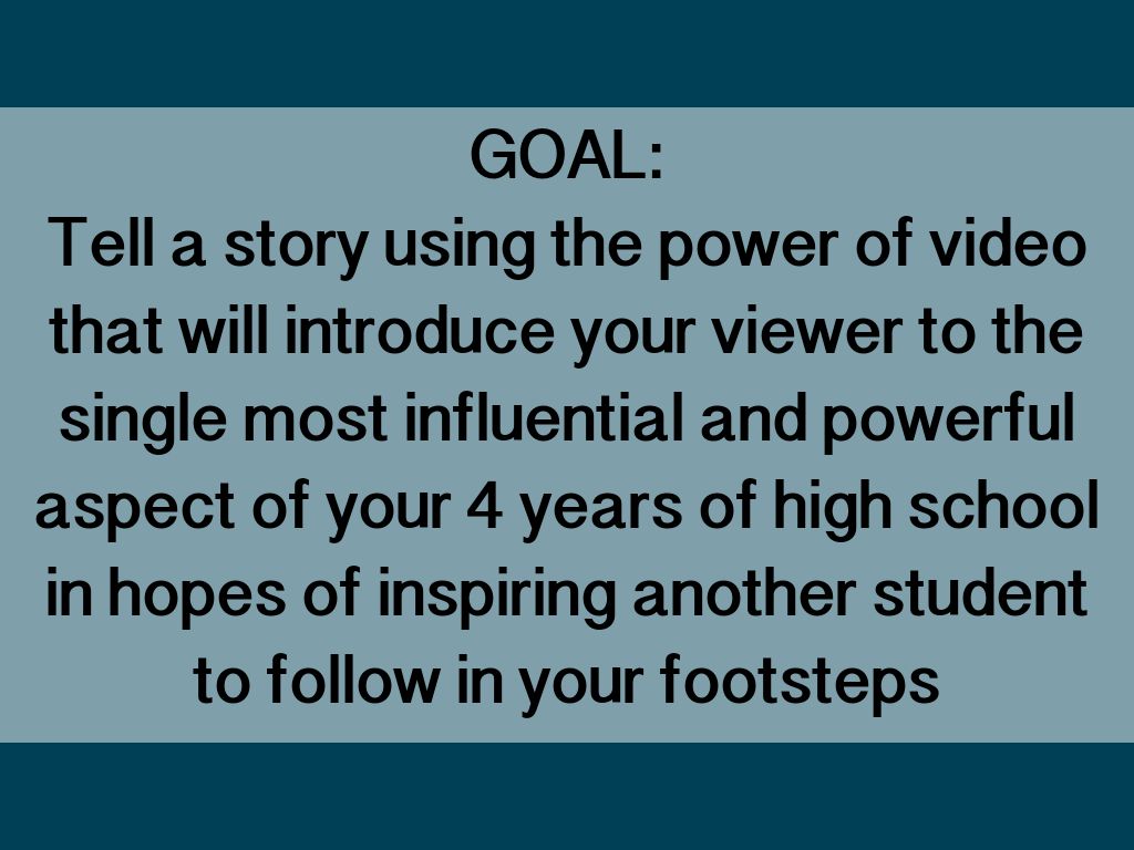 Tell a story using the power of video that will introduce your viewer to the single most influential and powerful aspect of your 4 years of high school in hopes of inspiring another student to follow in your footsteps
