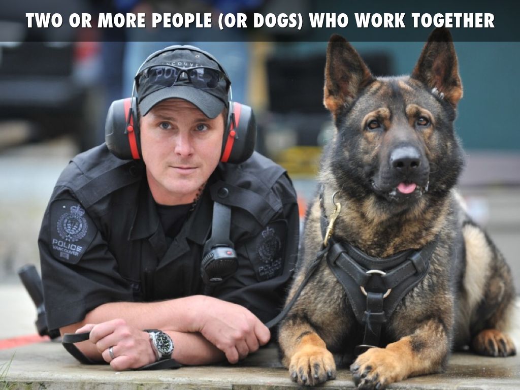 TWO OR MORE PEOPLE (OR DOGS) WHO WORK TOGETHER