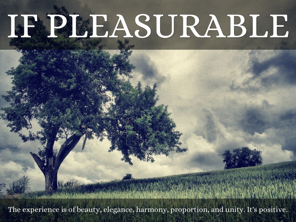the experience is of beauty, elegance, harmony, proportion, and unity. It's positive.