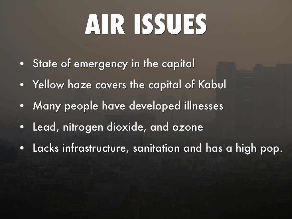 "AFGHANISTAN: Kabul Air Pollution a Major Health Risk." IRINnews. N.p., n.d. Web. 12 Oct. 2014.