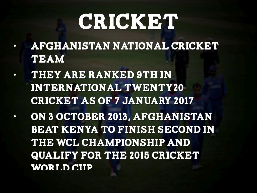 On 3 October 2013, Afghanistan beat Kenya to finish second in the WCL Championship and qualify for the 2015 Cricket World Cup