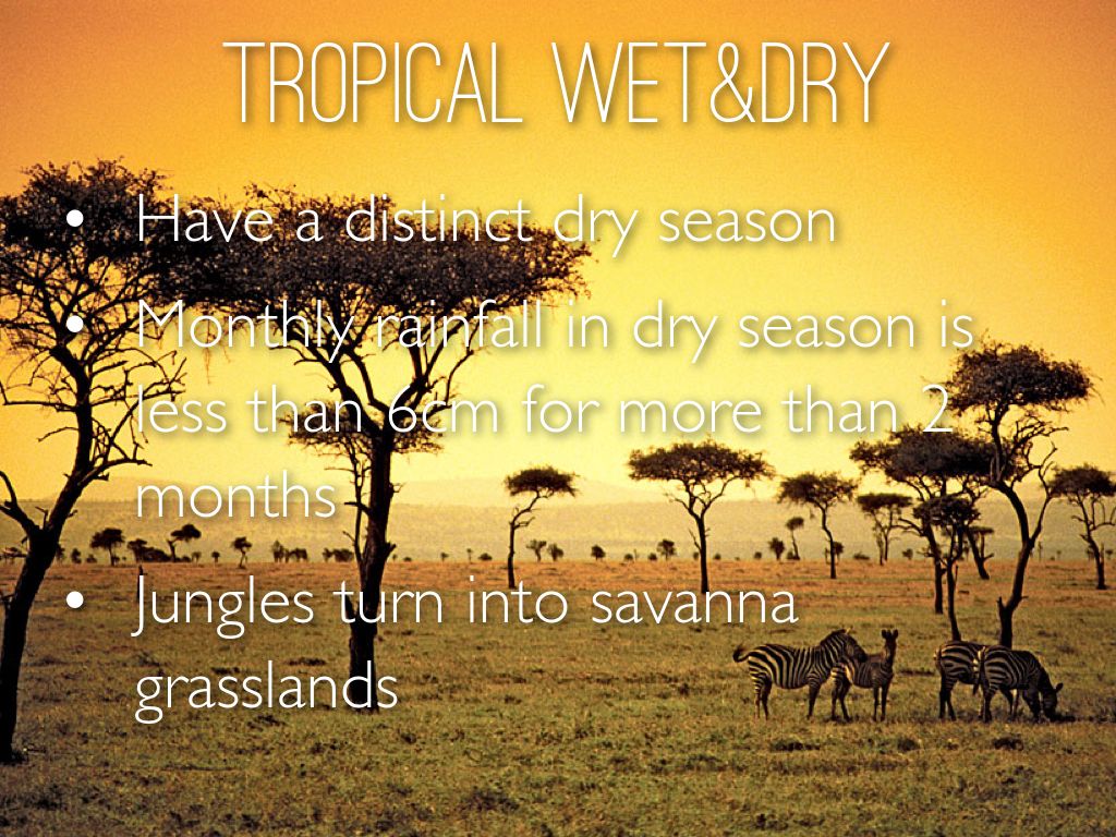 • Monthly rainfall in dry season is less than 6cm for more than 2 months