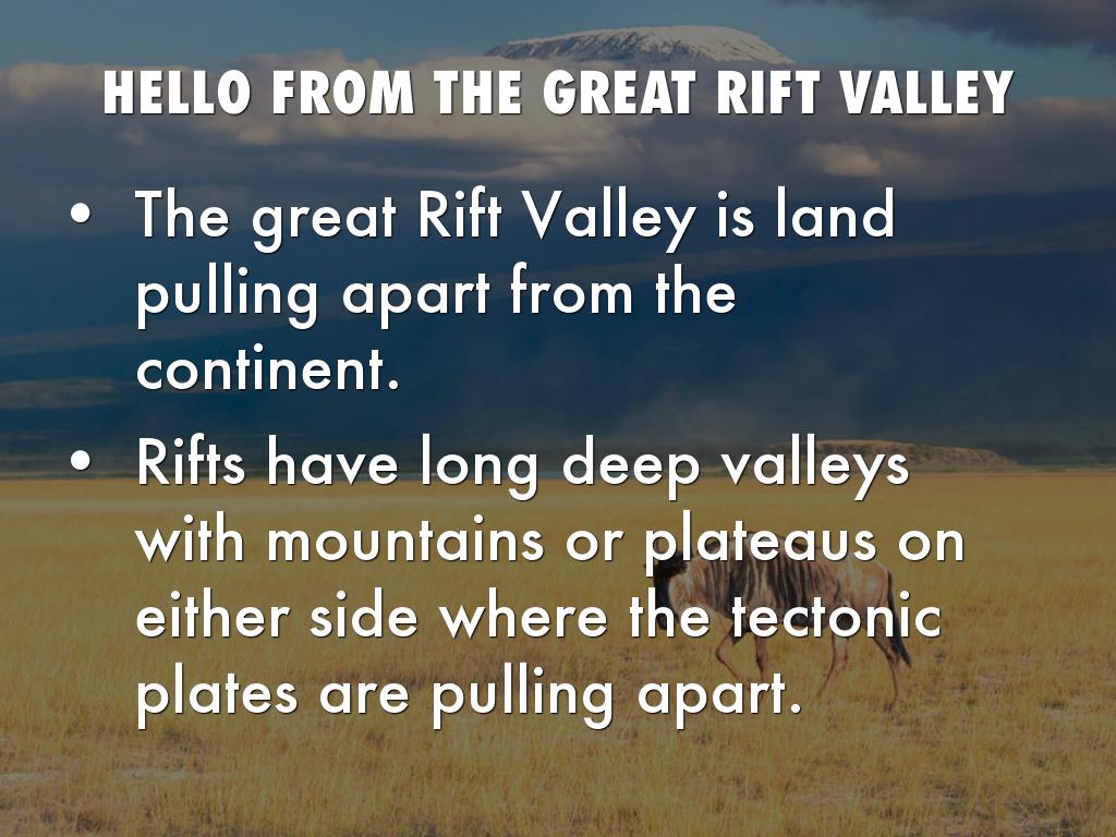 Rifts have long deep valleys with mountains or plateaus on either side where the tectonic plates are pulling apart.