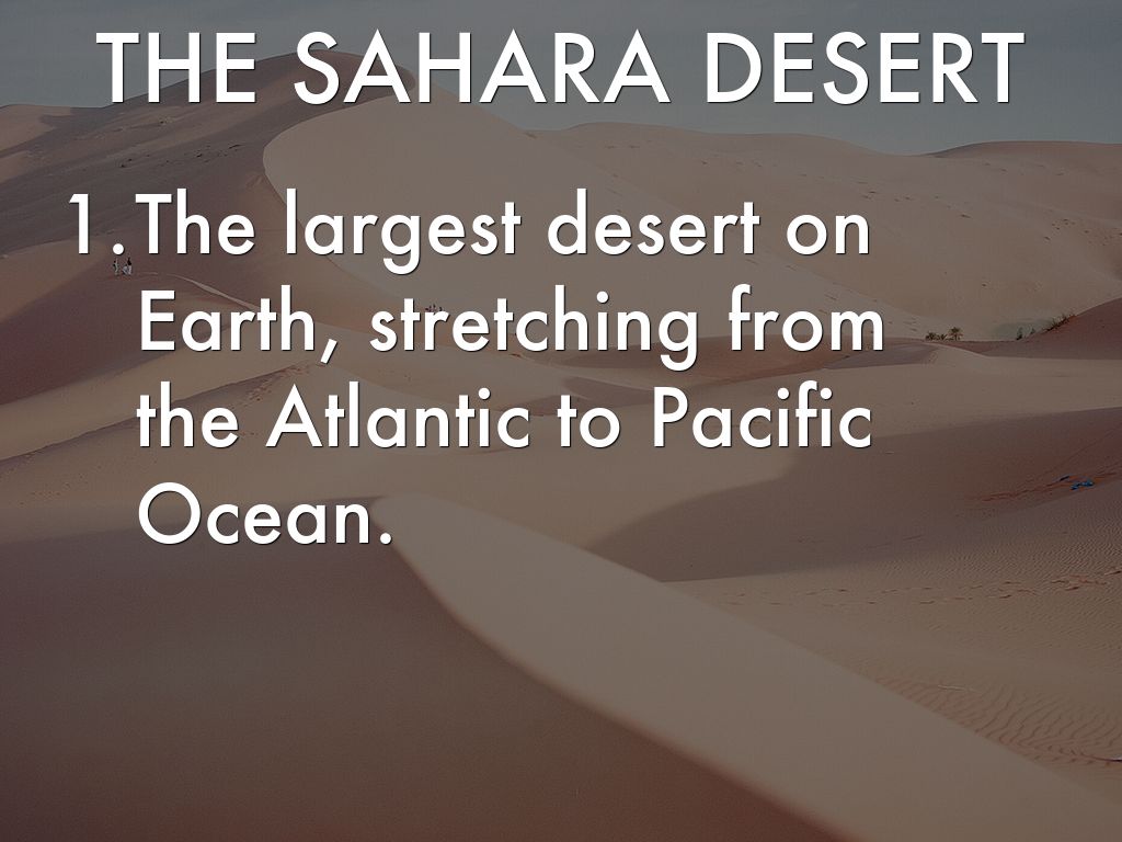 • The largest desert on Earth, stretching from the Atlantic to Pacific Ocean.