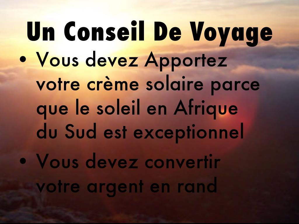 Mon project est à propos d'Afrique du Sud en Afrique.