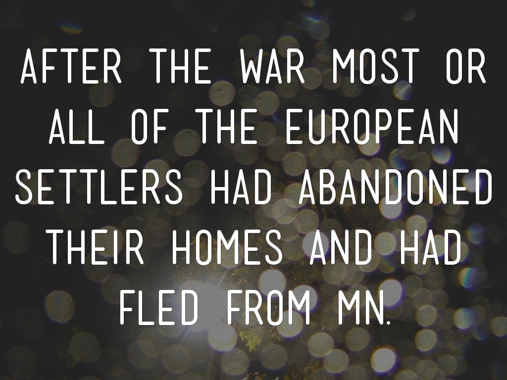 After the war most or all of the European settlers had abandoned their homes and had fled from MN.