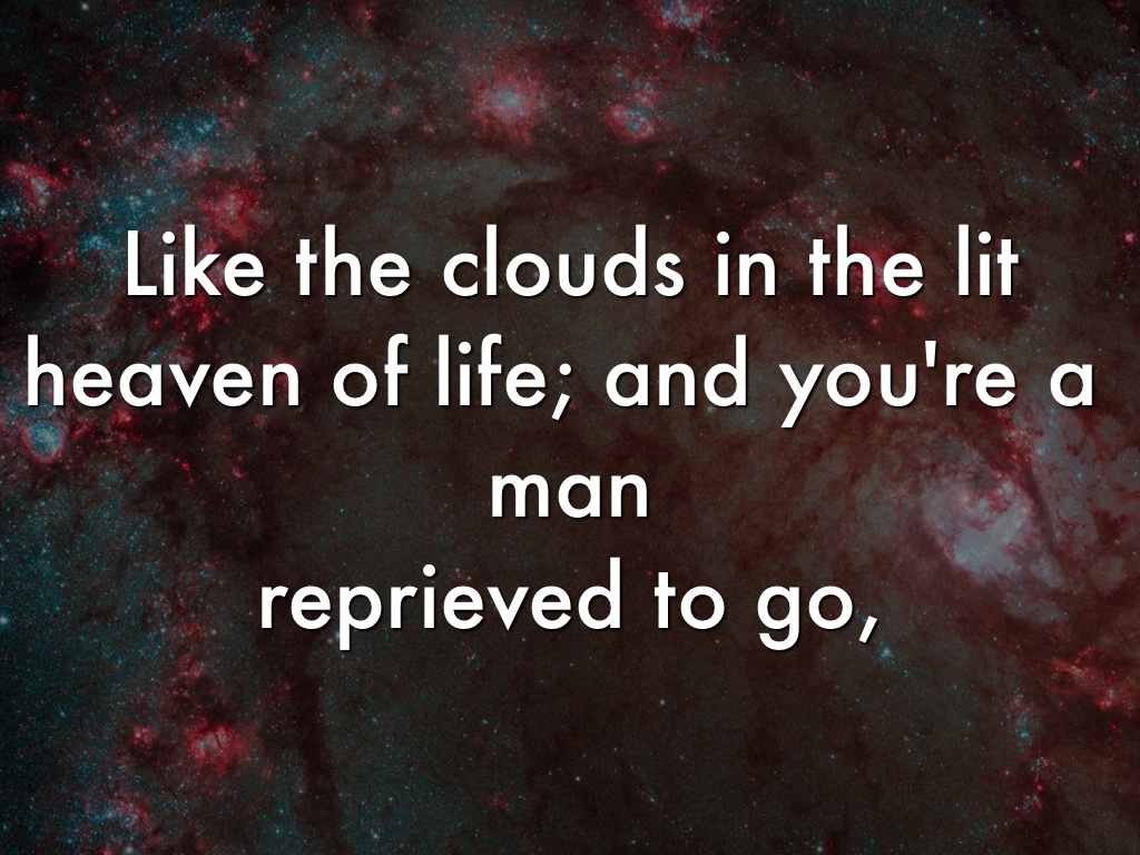 Like the clouds in the lit heaven of life; and you're a man