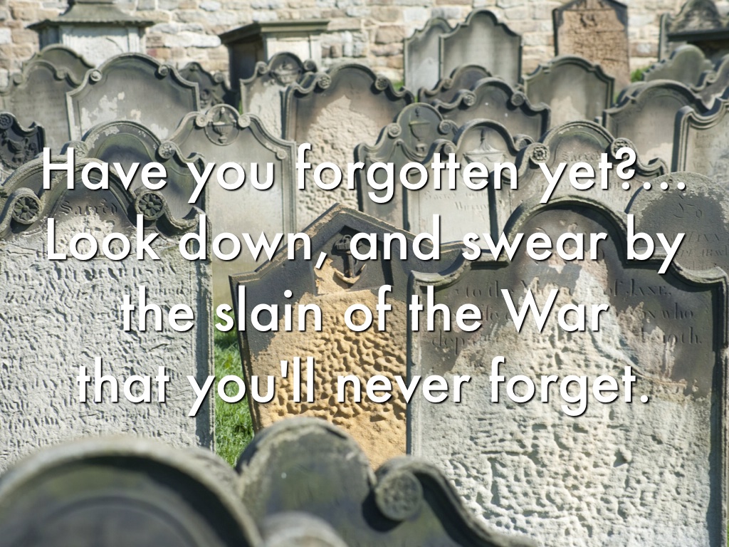 Look down, and swear by the slain of the War