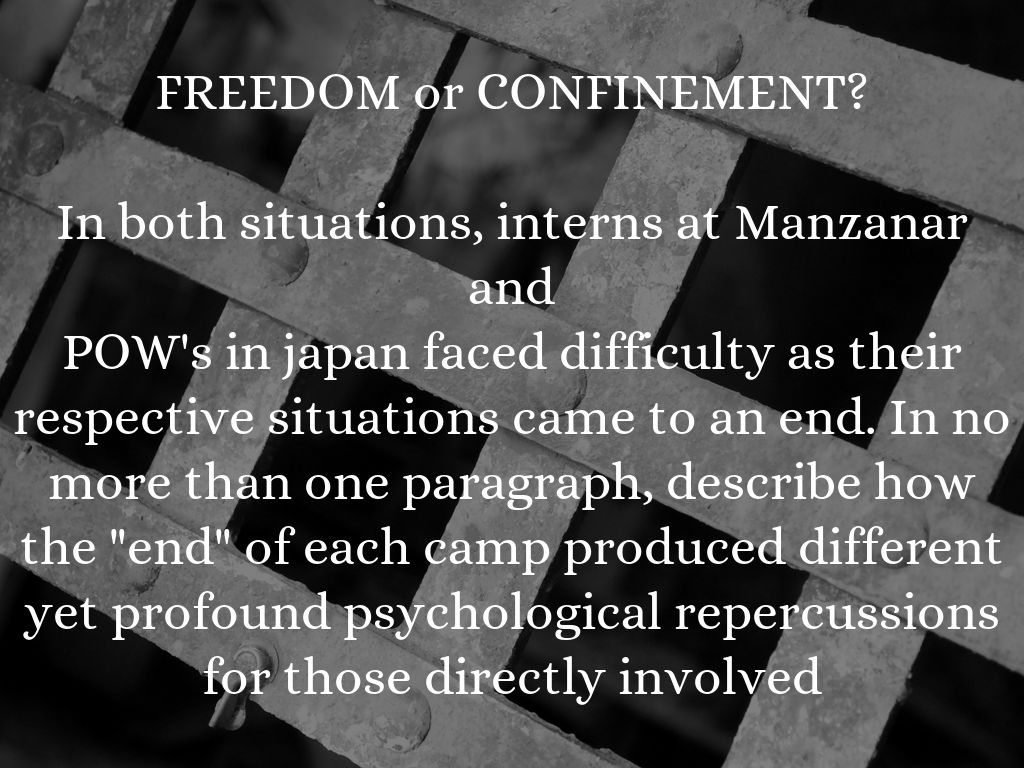 In both situations, interns at Manzanar and POW's in japan faced difficulty as their respective situations came to an end. In no more than one paragraph, describe how the "end" of each camp produced different yet profound psychological repercussions for those directly involved