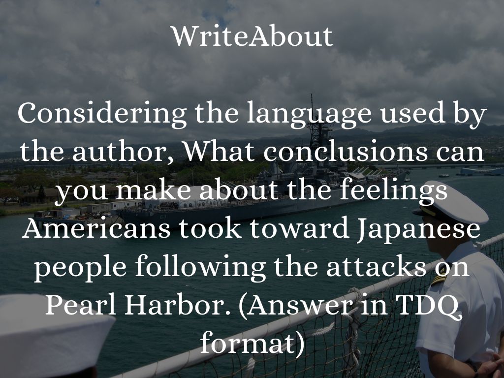 Considering the language used by the author, What conclusions can you make about the feelings Americans took toward Japanese people following the attacks on Pearl Harbor. (Answer in TDQ format)