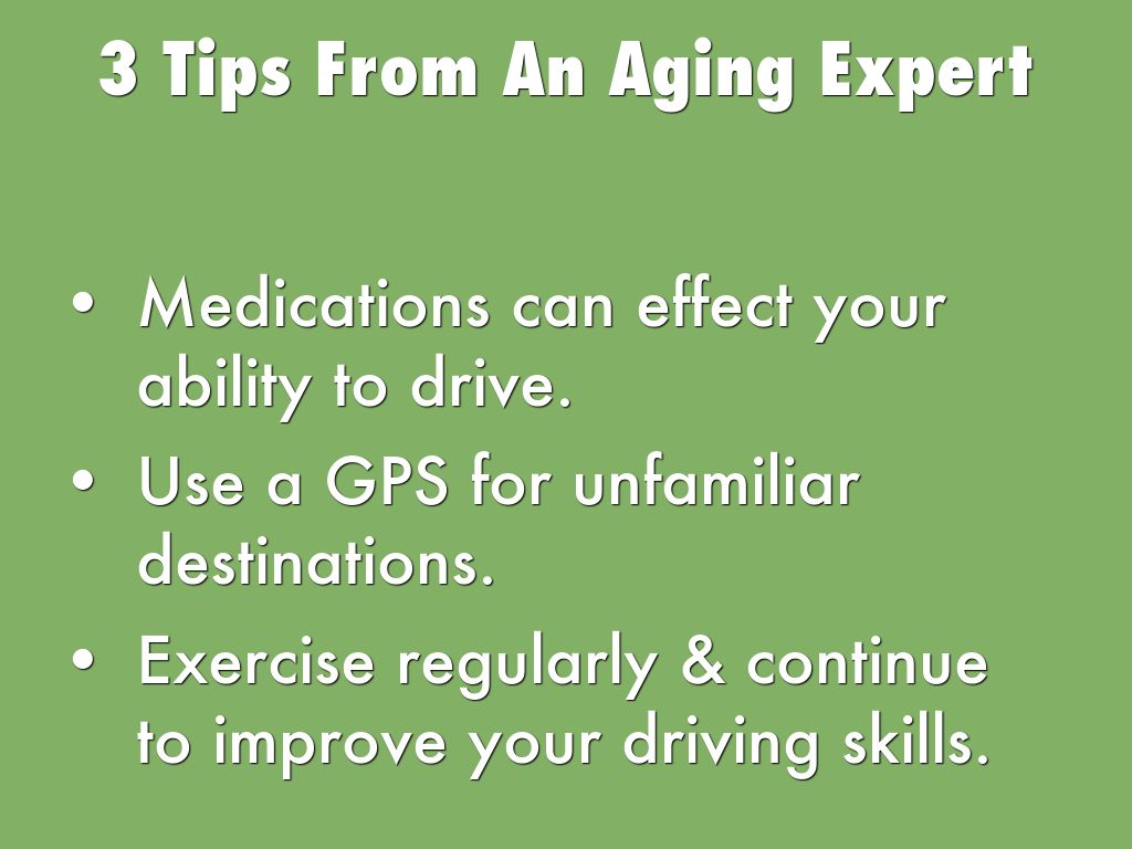 How to improve aging driver safety tips from Judi Bonilla aging expert.