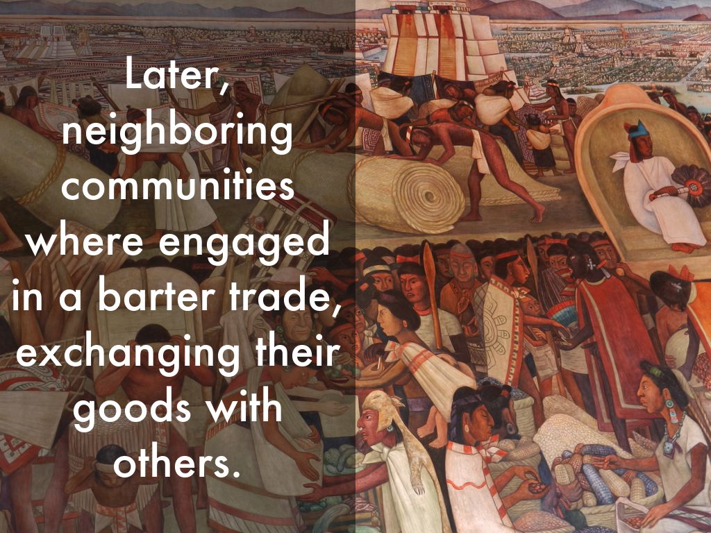 Later, neighboring communities where engaged in a barter trade, exchanging their goods with others.