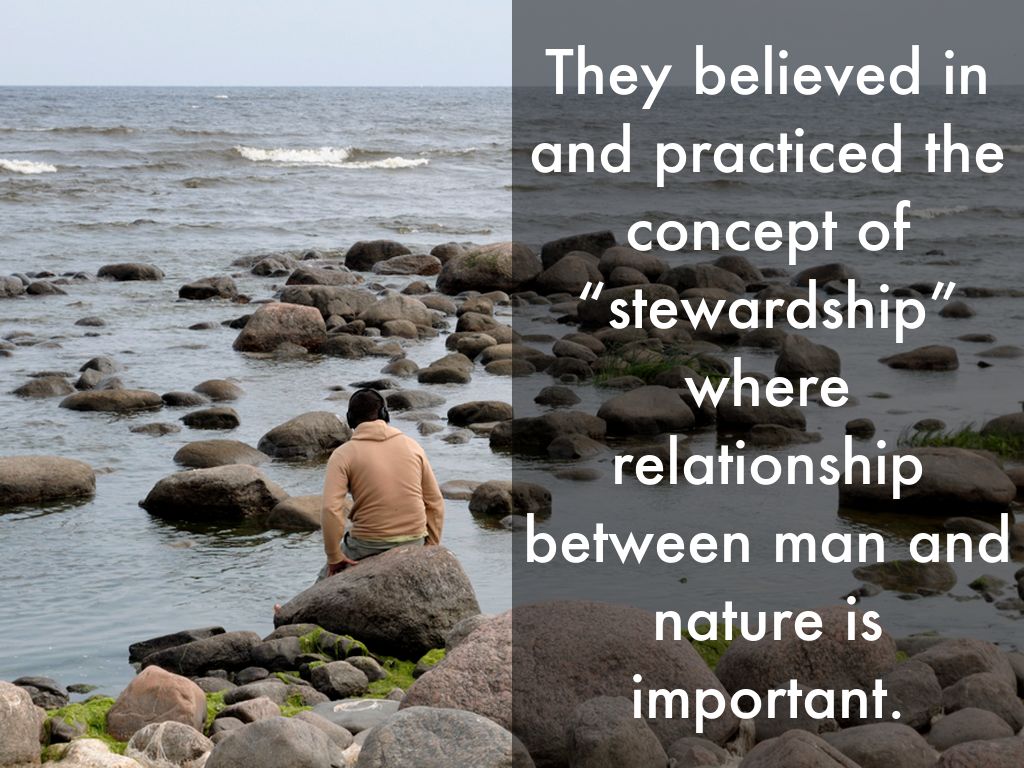 They believed in and practiced the concept of “stewardship” where relationship between man and nature is important.