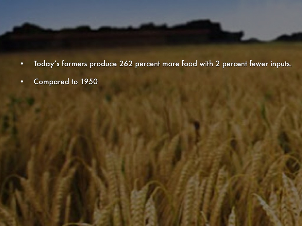 Today’s farmers produce 262 percent more food with 2 percent fewer inputs.